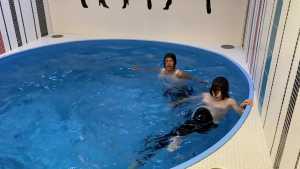 Getting wet and dunking in the pool! Wet sport tight outfit! Tight leggings and top! Wet hair and dunk a lot! Starring: | ||||
