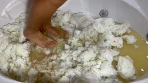 I get really messy with shaving foam! In a tight top and leggings! Foam even on my head and hair and face! Starring: | ||||