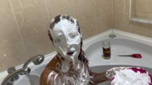 I sit on shaving foam! My whole ass is covered in it! Then I cover myself completely in shaving foam! My face, head, and hair too! And I suck dick! POV shot from above! Starring: | ||||