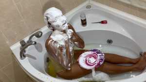 Covered in shaving foam! Pink slime on my head! Then a very hot masturbation with a dildo and moans! Starring: | ||||