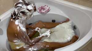 I climbed into a bathtub full of black slime! Then I poured shaving foam on myself! Completely naked! Starring: | ||||
