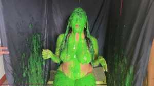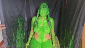 In this one I play the role of a softcore submissive who wants to get messed up! It starts with me wearing a green dress top and black frilly skirt. I explain that I want "you to get me incredibly messy. Cover me head to toe with thick gunge and goo... Starring: | ||||