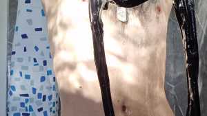 | One and a half hours of mess from two different angles.  I start by filing my pockets and underwear with whole raw eggs, smashing them in my clothes.  I add dry vanilla pudding mix to the slimy eggs and smear it all around.  Then I fill my shirt and... Starring: | |||||