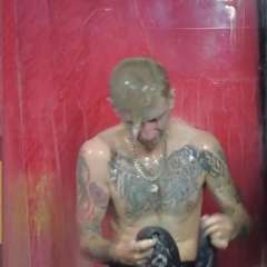 | Barney sits on the bottom of the pool in a blue wrestling singlet and has his feet and wrists strapped with velcro restraints.  Then the it starts.  He has black treacle poured over him leaving him a sticky mess, then squirted with foam before his fi... Starring: | ||||