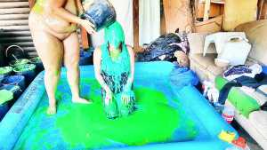I got very messy with eggs in pink denim jacket and then wet too! Then I ripped it completely! Long sexy dress was wet too! Starring: | ||||