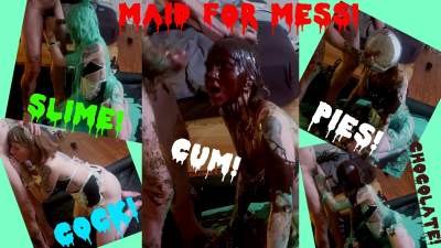 The messy maid is doing a sneaky gunge! Her master and mistress have stepped out for a while. Dressed in her sexy little maids outfit she enjoys letting loose with green gunge and white pies will she get caught... Starring: | ||||