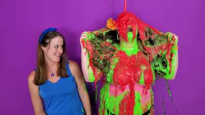 Got my lovely white satin pyjamas on. Just look how shiny they are and I love the feel of them. I can't wait to see how these will feel all covered in gunge, that nice slippy, gooey gunge all over these silky satin pyjamas. What do you reckon shall I... Starring: | ||||
