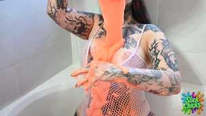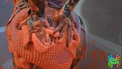 | Rosa Starship returns for some Slick solo fun! This gorgeous tatted and body modded beauty's second time in slime and she's loving it! 4 buckets of Fluorescent Orange slime! Clothes filling, head dunking, Thick heavy pours, ass smacking, rolling i... Starring: | |||||