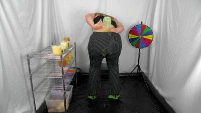 | It's back for another trashing and this time I'm using lots of savoury items, beans, spaghetti, thick gravy, milk, porridge and I also threw in some rice pudding, custard and a trifle. Oh what a sloppy mess it made!  Not only did I fill the suit but... Starring: | |||||