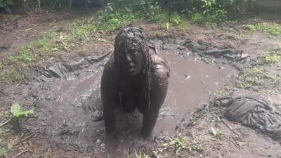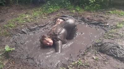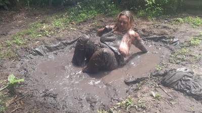 Tempting Mud in Denim Overalls and Sweater