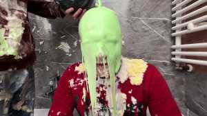 | Jazmin follows up her slime scene by getting creamed with multiple pies on The Slime and Pie Show! Starring: | ||||