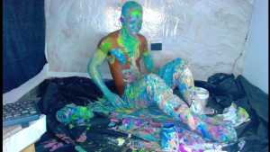 Jordan is pure joy in motion a gorgeous, smiling afro guy with a great sense of fun! Dressed in jeans and a button-up shirt, he starts by showing off his playful side before diving headfirst into a wild, colorful slime session.