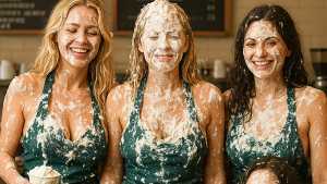 AI Images created for a Substack post featuring female baristas getting pied in pranks at work. Starring: | |||||