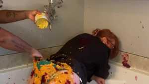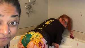 Hair Wash in Bikini Top and Shiny Leggings
