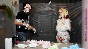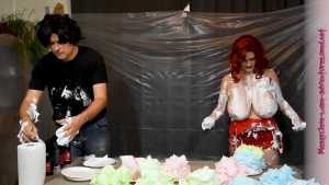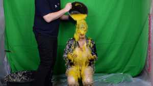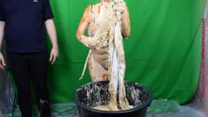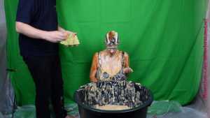 This video was made in cooperation with The Gunge Zone. You can find part 1 in their store. Cleo has ruined her clothes with custard and gunge and she want to get rid of them. She first takes of her shirt, but finds that her bra isn't quite ruined...