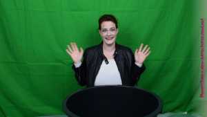 Cleo sits in her little kiddy pool wearing a bathing suit and a swimming cap. She is surrounded by a lot of tiny balloons filled with all kinds of mess. As she takes the first balloon, Bob asks her to guess what's in it and after guessing she has to...