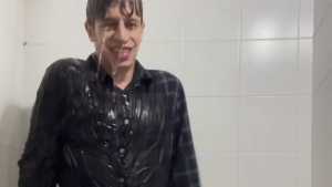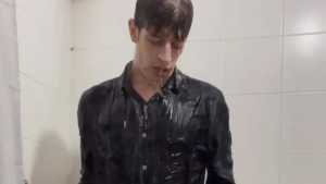 Derek in a new, super-wet video. Dressed in a shirt and jeans, he throws a tide of water over himself, as is his wont, without a care in the world, flooding the room and himself. Always dripping wet and having fun. The wet look on his shirt and jeans... Starring: | |||||