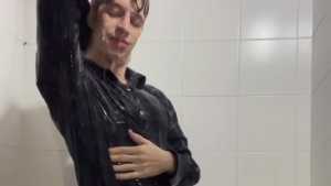 Mike takes another shower, this time wearing a tight long-sleeved shirt and black pants. Dressed in all black, he immediately looks shiny under the water, and the tight black shirt highlights his great body. He plays and has fun, and by the end, his... Starring: | |||||
