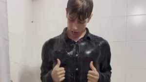 Liam gets all wet from splashing water on himself. His new green shirt immediately starts to get shiny and stick to his body, the effect is extraordinary. Soon, his very short jeans will be completely soaked. Even when Liam is completely wet, he won'... Starring: | ||||