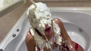 Well! This time Trixxi is hot and heavy into the marshmallow fluff! Heavy stock leftover and she just could not let it go to waste! She was handed her black bikini and said get into that tub baby! Grabbing those jars of sticky sweetness, she lath... Starring: | |||||