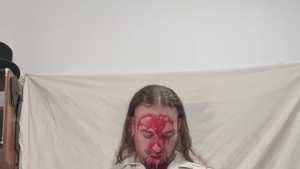 | Wearing my amaizng nuptune outfit I sit on a beautiful princess cake smashing it up with my ass. I then take on some very thick syrup to ruin my outfit. Starring: | ||||
