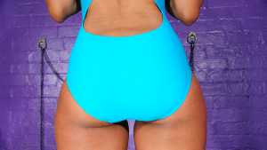 She's dresssed for the occasion in a lovely turquoise one-piece swimsuit, which she's team... Starring: | ||||