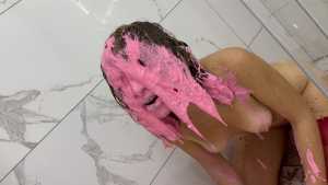 I dunk in slime so many times that my face and hair get messy! It's so much fun! Then I pour the slime all over myself, bathe in it, and masturbate my pussy until I cum! Starring: | |||||