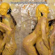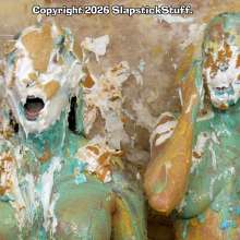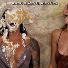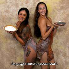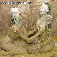 If you like the traditional 2-girl SlapstickStuff scene, with some carefully-arranged build-up and lots of goofiness, SS305 delivers! (Meredith is quite good playing a talented actress who always reminds us she's a talented actress, and Alura excels at once again getting the worst of it when her evil plan backfires.) And the pie hits are exceptional, and the double sliming is one of the sexiest slimings (ahem) we've ever done! But let's be honest: You really wanna see two hotties get naked and wrestle and play in the mess and pie each other with glee, right? And that doesn't happen every day with SlapstickStuff.... but it happens here!