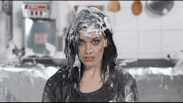 Wow! She looks genuinely shocked at that pie being slapped to the back of her head!