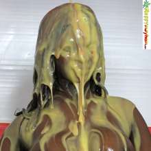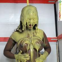 Up now on the download store at www.messymayhem.com a 56 picture photoset of busty, black, beauty Destiny Dunes topless in the gunge tank and getting absolutely deluged in yellow and then turquoise blue gunge. She gets completely covered, looking up into the stream of gunge and letting it completely cover her amazing sexy body and loving every second. All the glorious mess, her amazing body and her reactions are all captured in fantastic detail. Here are some samples but remember the ones is the .zip file are five times the size of these!