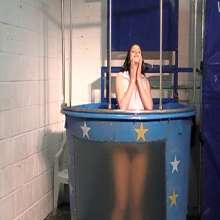 Join Catherine in our Naughty or Nice game with Little Hayley. Little Hayley asks Catherine lots of revealing questions and dunks poor Catherine lots of times. Catherine decides to wear her white dress with no bra and just a thong. As soon as Catherine is dunked the dress goes see-through revealling her lovely boobs and cheeky bum.