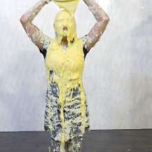 Im wearing a pretty black slim dress with some black tights on with no heels. We have some bowls of poridge and custard, i put my feet in the custard and show them off to the camera putting them in and out again. Next i put my feet into the bowls of porridge putting them in and out showing them off to the camera. Next i put my face into the bowls of custard then the bowls of porridge and rub some onto my face. I kneel up and pour the porridge over me and my feet, then stand up and pour the custard over my head i roll around in the mess on the floor making sure i'm fully covered before entering the gunge tank, i sit down and pull the chain releasing the bright green gunge all over me I sit down in the gunge and cover myself in it showing off my gungy feet, and rolling around in the gunge.