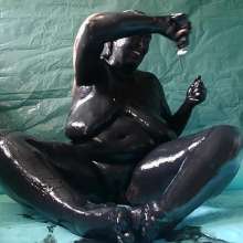 Naked and ready for fun, I have bottles of thick black paint waiting just for me. As I pour each bottle of paint, and smear it over myself, the layers get thicker, But the smooth texture covering my pussy has me playing with myself and cumming multiple times.
