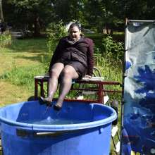 We decided to beat the heatwave here by trying out our dunk tank filling plans! For a bit of backstory, in 2018 I stumbled on a Craigslist ad for a dunk tank and bought it on a whim. I had not considered the logistics of filling said dunk tank. We live in a very rural area with no public water system. Our house is on well water. The dunk tank holds 500 gallons of water. We don't want to risk burning up the pump or running the well dry pumping up that much water so I have only ever gotten to use the dunk tank at friend's houses. Andi had so much fun with it last year that I became determined to find a way to fill it at the house. Thanks to some brainstorming with Doctor Splash, gpgt90 and Hope, a few viable plans were conceived. The first attempt was a bust, but the second one worked! Another obstacle that came up was how to do our usual style shoot with only 2 people. Gpgt90 was also helpful in that area with coming up with a viable photography system. We managed to get in 10 sessions while it was filled last week; a long formal, a business skirt suit, a ballerina, a cheerleader, a short formal, a bride, a punk rocker, an Alice costume, a church lady, and a clown. I still have sessions from last year that I am working on editing, so it will probably be a while before I get around to all these. In the meantime, here are some cellphone pics and a video highlighting the first dunks of each outfit. And once again, thanks to Doctor Splash, gpgt90 and Hope for helping to make this happen Enjoy!