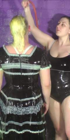 Nikki turns out to be a natural and absolutely loves trashing her friend! She uses pies and yoghurts, and cream and custard and more. Adriana's handbag and spare knickers are ruined, and Adriana gets a pie hat for extra humiliation.