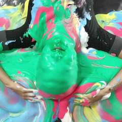 Clean and dry: 0:00 to 1:16 Messy wearing the swimsuit: 1:16 to 4:49 Stripping out of the swimsuit: 4:49 to 5:07 Naked and messy: 5:07 to 7:25