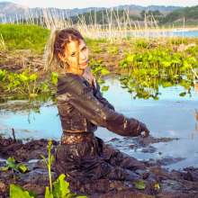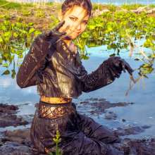 A super cute & fashionable girl was taking a short excursion in a state park. She walks along the shoreline without realizing the mud is very soft and deep. After seeing the danger, she tries to leave but her brand new Puma sneakers are sucked in. She then spends some time trying to dig her shoes out since they are brand new. However, carelessly, her outfits (Fenty Puma shirt and Adidas track pants) are gradually becoming dirty and messy. At a point, she gives it all up -and decides to have fun in the swampy mud, regardless of how her adorable outfit would turn out to be...