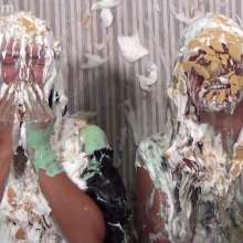Anglefan said: The lovely Bella D is back!! She invited her good friend Jessica to try getting pied for the first time.