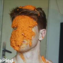 In this session, Jacob, one of the hottest messy model, is humiliated with mashed carrots. This orange paste is spread all over his face, his hair and his body.