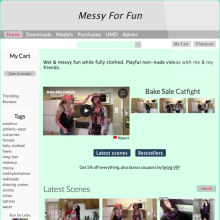 Jenn greets the viewer, topless, wearing only white pantyhose, which she promptly soaks in a shower. Then, taking a seat, she erotically and playfully covers her whole body in dark chocolate brownie mid, covering all parts, from hair to toes. With more mix left over, she pours this over her head, adding to her messiness. Asking the viewer what to do next, Jenn lays down and writhes her whole body in the messy mixture on the floor of the shower. This turns her own so much, she fingers herself to climax.