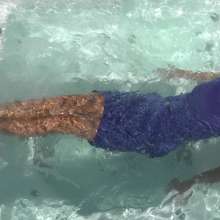 Jess relaxes with the dress in the water. It's a simple dress, very suitable for bathing on hot summer days, after a day of work in the office.