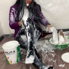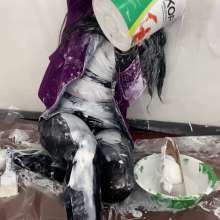 Since the paint is now dripping all over her instead of down the wall, you decide to completely ruin her and become the wall itself. So you continue enjoying the paint on the floor and pour the rest over her while you play and have fun painting all her clothes inside and out. Every now and then, she also plays with her stained heels.