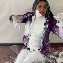 Then, she continues painting and making a fool of herself to get as dirty as possible.