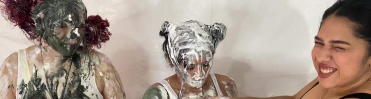 The Santa-girl outfit is both cute and sexy on Mai--the hat looks cute on her, and the sleeveless Santa-dress is pretty sexy. And, as expected if you've seen Mai before, she gives a pouty-after-being-pied performance, but you can still kind of tell she's not bothered by it--instead, she actually digs knowing that she's doing something that excites people watching her (and she always used my reactions as a way to measure that, the little vixen). In this scene, one camera captures Mai's face and bare soles, and the other camera is in close-up on her super-cute face. Every pieing, egging and gunging is shown twice--once from each angle. So, this scene really is for those of us who love girls' feet and pied faces equally.