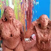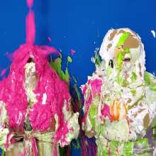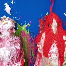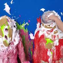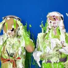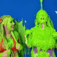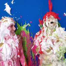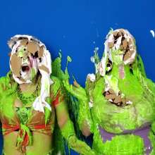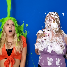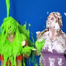 Rebecca brings her real cousin into the messy fray! Meet Mandy, who was nervous, but more excited than anything to get messy. We let these two just banter while we cover them with 30 pies, 5 chunky slimes, and a legitimate surprise 7 pound chocolate syrup pour.