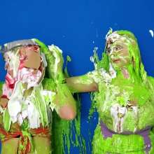 Lots of great after footage of these girls too. First up, 3 more pies: one nails the other followed by Mandy pieing herself. Then some messy sock and messy bare feet play. Lots of messy hair shampooing, as one does it to the other. Finally, they splat handfuls of slop into their own faces before waving goodbye to you!