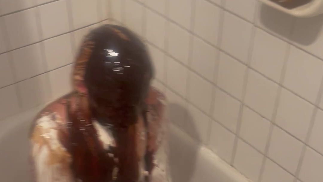 Well! This time Trixxi is hot and heavy into the marshmallow fluff! Heavy stock leftover and she just could not let it go to waste! She was handed her black bikini and said get into that tub baby! Grabbing those jars of sticky sweetness, she lathers herself up just like soaping up for a shower!
