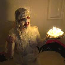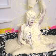 Join me in celebrating my birthday with an entire bathtub full of mayonnaise! This is one of the most epic messes of my lifetime without a doubt. My fun starts in a bath already overflowing with mayo, and I keep adding even more and more mess throughout the scene. There's so much overflowing mess that it becomes hard to distinguish me from the mayo, just how I like it :) Enjoy over an hour of me squirming, struggling, huffing/puffing and cumming in my mayo bath. I literally could not stop... It was a dream come true. I came an epic 15 times which broke my cum record! And each one was quite the journey. Jay had the great honor of pouring mayo all over me while I came. I couldn't help but head dunk, pie myself, dance with joy, spank myself and have the time of my life in this bath. I pushed myself underneath the mess so intensely that I could hardly breathe. You can barely see my mouth appear as my entire body is engulfed in mayonnaise.
