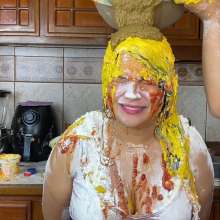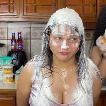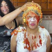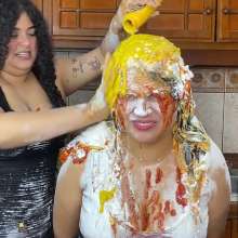 The first of the disgusting ingredients for revenge is sardines. Their characteristic smell drives Layla crazy since she's tied up and can't defend herself. Her hair will end up smelling awful, and she knows it. Then flour and butter make their appearance, leaving her hair greasy and tangled!