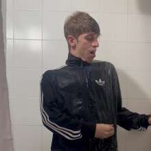 Ostin returns to the shower, this time sporting a bizarre yet effective outfit. He wears an Adidas sweat-shirt with white pants, and the effect under the water is extraordinary. He also enjoys a generous shampoo, before performing his final striptease!